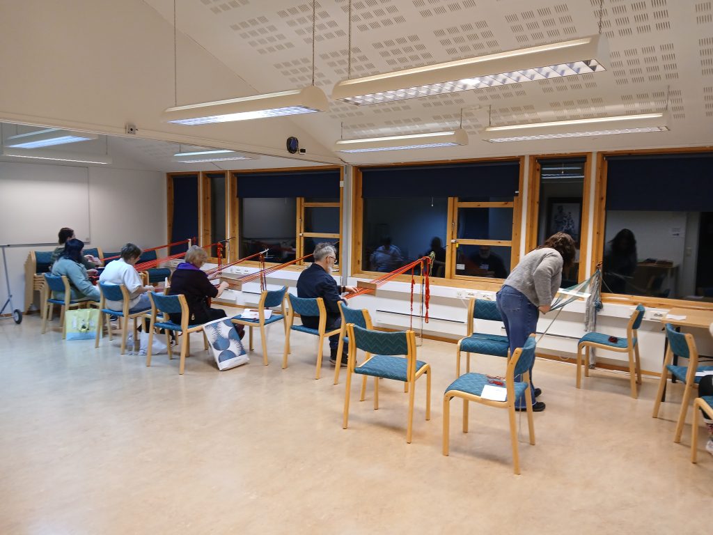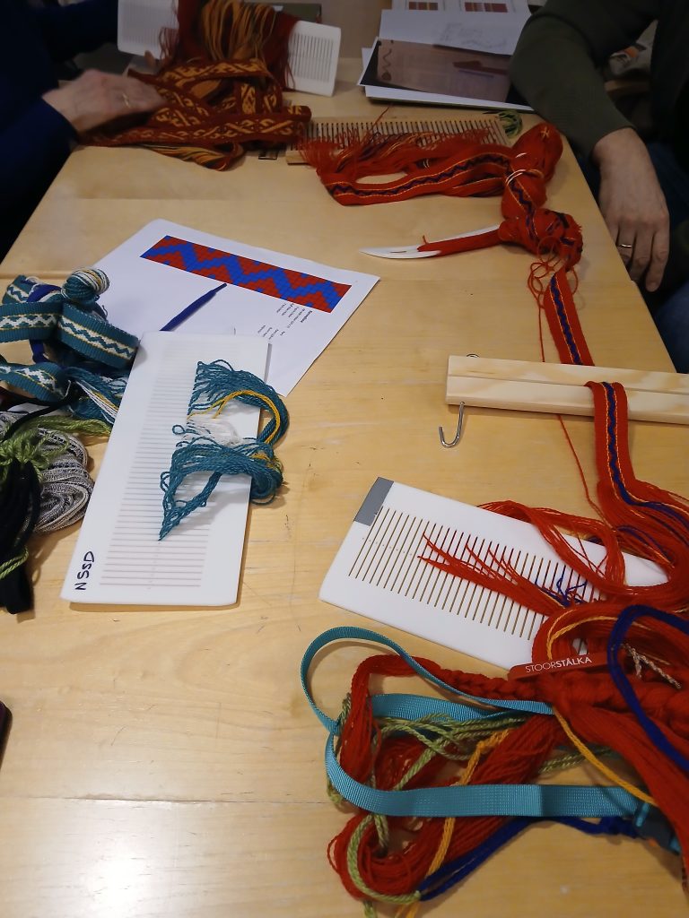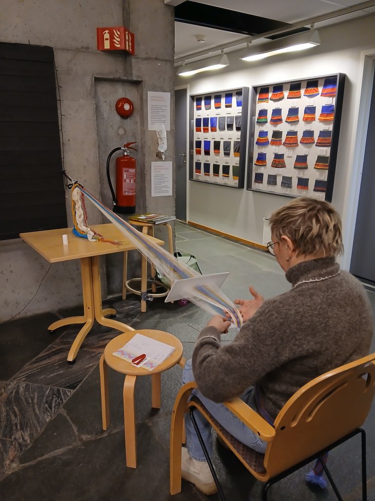 I går var siste kveld på grindvevkurs, i samarbeid med Nuorta Finnmárkku Sámiid Duodji. 11 deltakere har vevd skobånd og holbikant for første gang. De fleste fortsetter videre, mens noen fant ut at dette ble for møysommelig! Konservator og formidler Jorunn Jernsletten var kurslærer, og er glad for å føre videre håndverket, som lever når det deles.